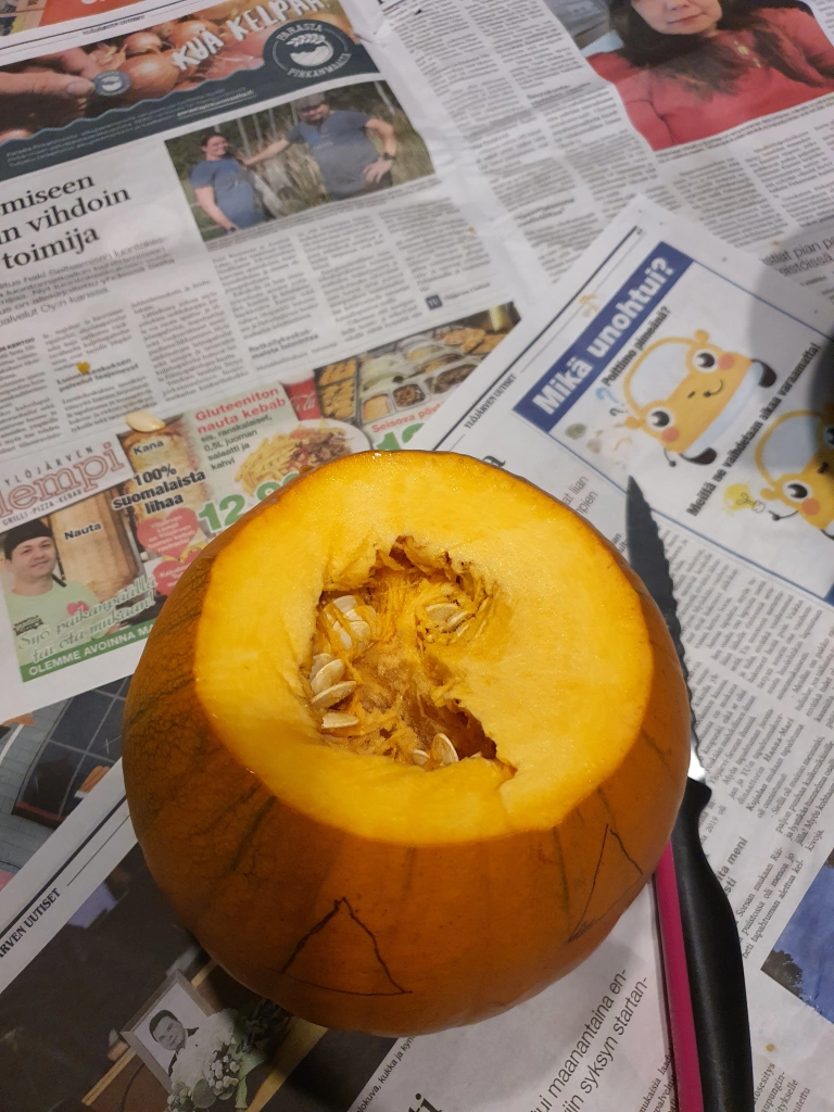 Me tehtiin tänä vuonna meidän ihka ensimmäiset kurpitsalyhdyt. Oon monta vuotta jo halunnut kokeilla, mutta yllätys, yllätys en oo saanu aikaseks. Nyt ajattelin, että lapset on jo sen verran isoja, että voisi olla hauksa halloween aktiviteetti kokeilla yhdessä lasten kanssa 😀 ja oikeassa olin. Lyhdyt valmistui yllättävän nopeasti ja helposti.
