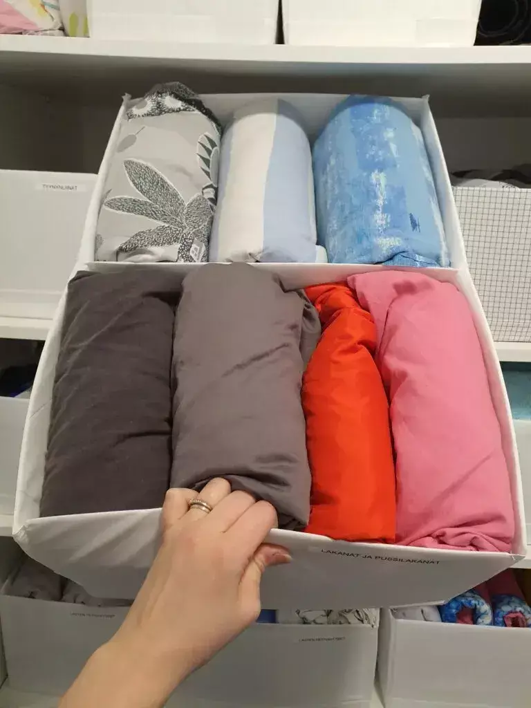 Meidän perheen kaappien järjestyksen kannalta mullistava vinkki oli myös, kuinka muotoonommellun lakanan saa viikattua siististi! Iso kiitos tästä @kiiraorganizing.